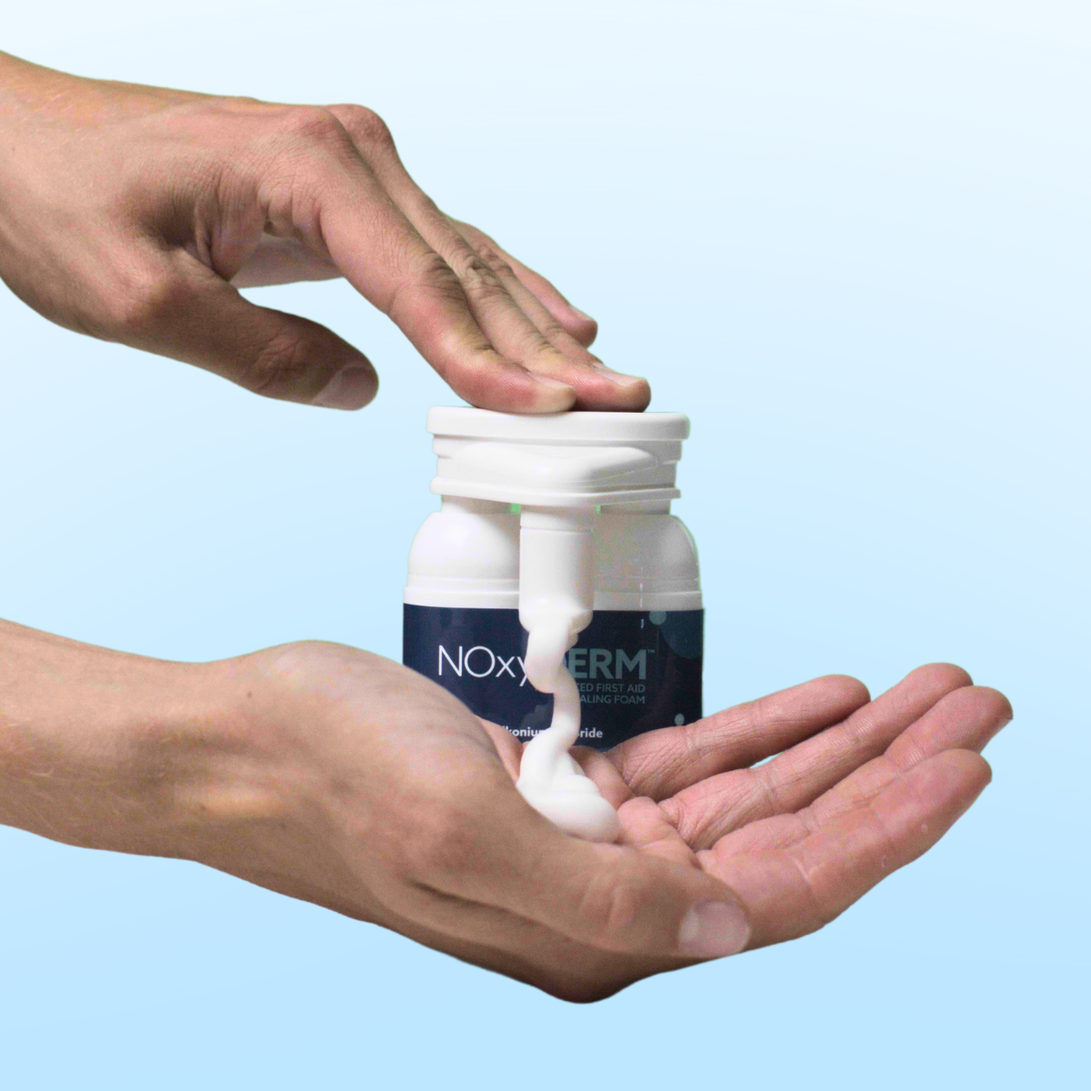 NOxyDERM is a first aid antiseptic foam that helps protect minor cuts, scrapes, and burns from infection while supporting your body’s natural restoration process.